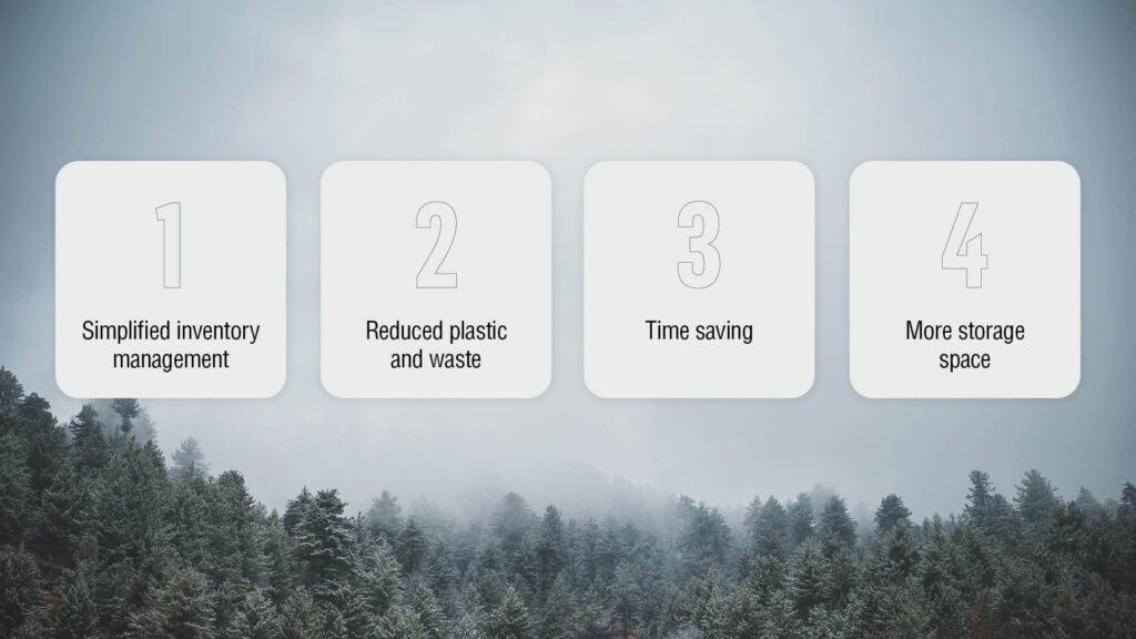 • Reduced plastic and waste